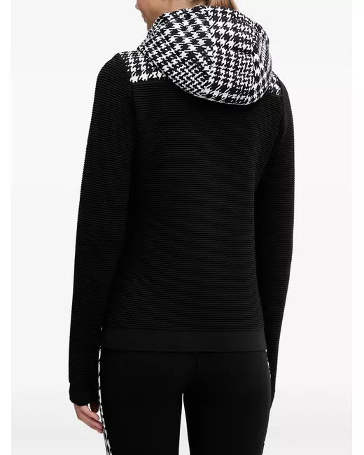 black/white houndstooth pattern ribbed texture zip fastening hood long sleeves