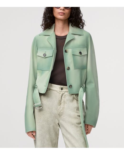 Season after season, loewe continues to express its leather expertise - dating back to 1846 - in fresh perspectives. This jacket revives a utility silhouette in supple lambskin, while a bold hue and cropped, belted cut issue modern appeal.