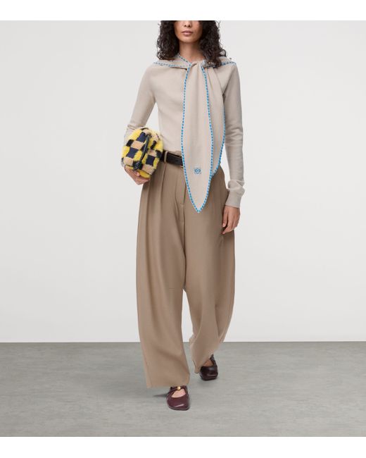 Playfulness is part of loewe's identity, with the label welcoming a refreshingly quirky and whimsical approach to the world of high fashion. This is evidenced through this wool-blend sweater, with its soft crew-neck profile accented with scarf detailing and vibrant contrast stitching.