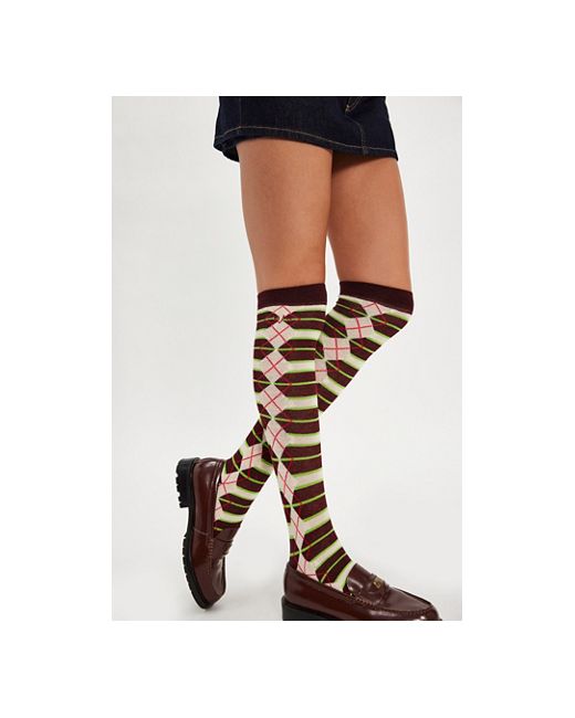 So fun and funky in a forever timeless design, these staple socks are featured in a knee-high style with Arygle printing and colorful striping for the ideal dimensional finish. Damson Madder Knee High Socks at Free People