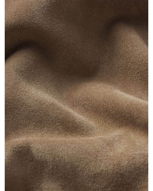 The Suede Trench Jacket is crafted from supple 100% calf suede with a fully lined interior, featuring a classic button front, functional pockets, and adjustable buckles at the waist and cuffs for a timeless, tailored silhouette. FRAME The Suede Trench Jacket Light Camel Denim Size XS