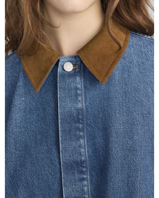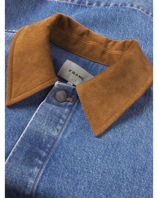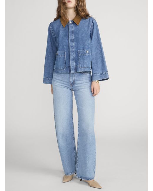 A modern silhouette with a nod to vintage ease. The Swing Jacket is cut in soft denim with a crisp collar, oversized sleeves, and gently flared shape that moves with you. Finished with patch pockets and a rich, indigo wash-designed to layer effortlessly, just like your favorite jeans. FRAME The Mini Denim Swing Jacket Sonic Size XS