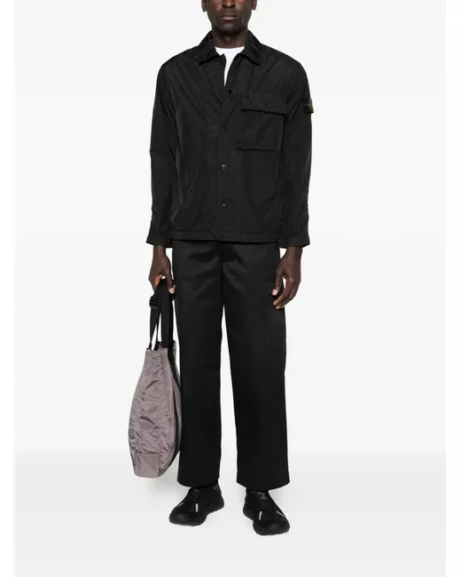 black button fastening chest pocket long sleeves point collar buttoned cuffs