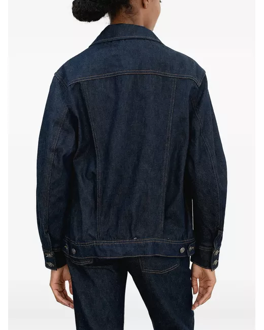 dark blue button fastening chest pockets point collar long sleeves buttoned cuffs