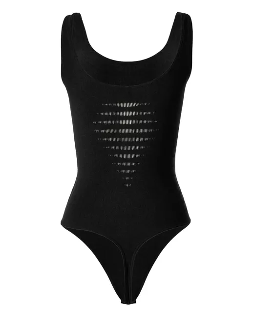 black horizontal slash detailing thong style sleeveless scoop neck body Just a reminder that this piece must be tried on over your own garments.