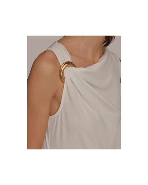 Make a statement with this Donna Karan New York sleeveless cowl-neck top. Shoulder hardware and elegant drape combine with pull-on style to create a polished, fashion-forward finish.