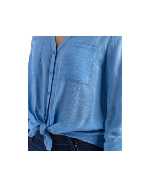 Embrace breezy sophistication in this Bcx gauze button-up top styled with 3/4-length sleeves. The collared V-neck and relaxed fit create an effortless, airy silhouette suitable for everyday styling.