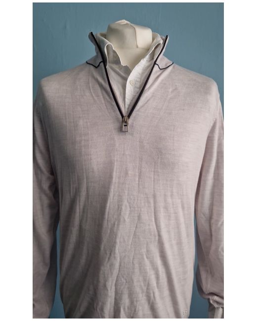This is a stylish PAUL SMITH Men's Jumper in size Large, made from a warm wool blend in a beige colour. The jumper features a 1/4 zip design with a tight-knit style and long sleeves, making it perfect for casual occasions in the autumn season. The pullover style adds a touch of luxury with the brand's logo accent, while the regular fit ensures comfort and style for men who enjoy walking and outdoor activities.