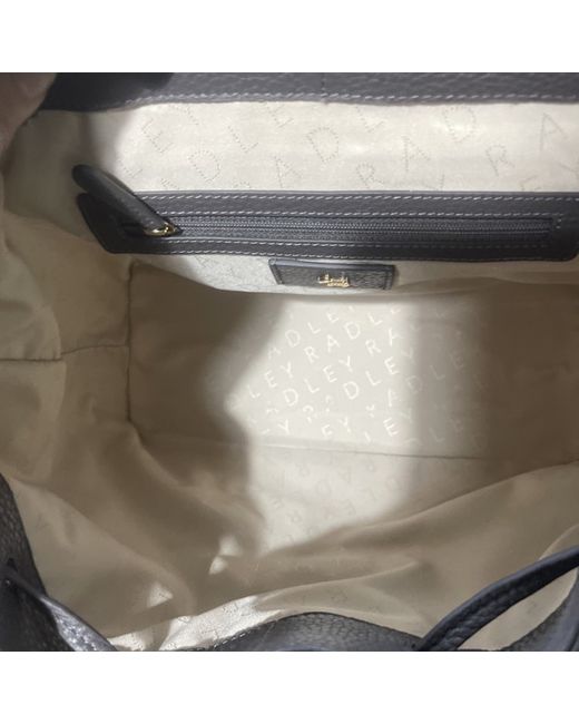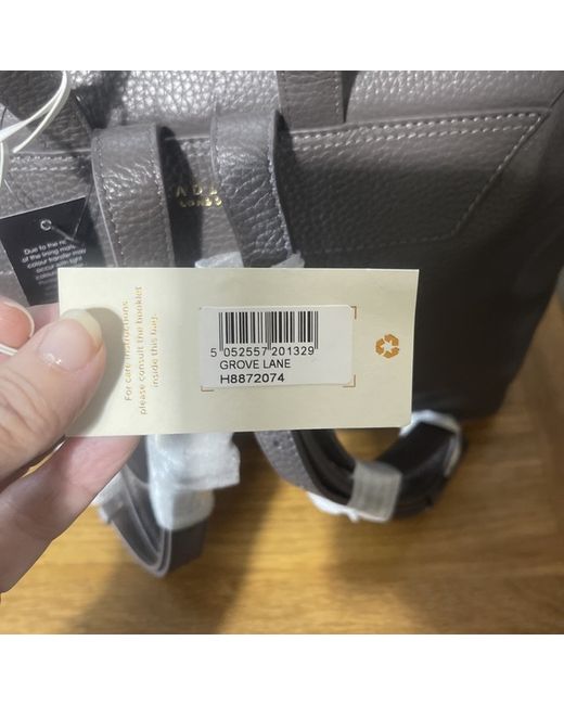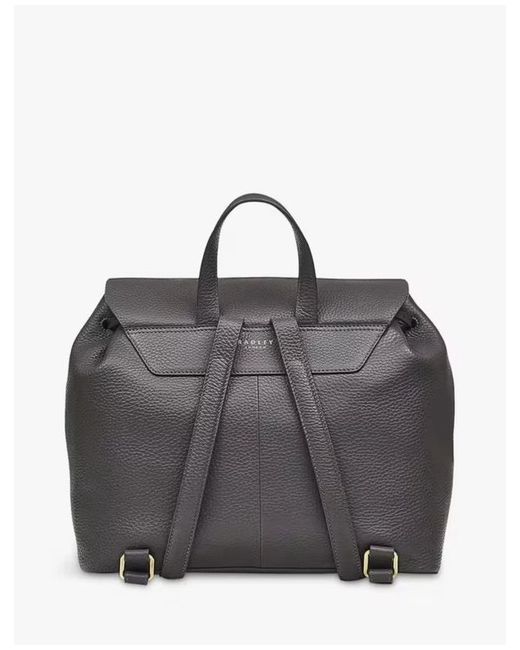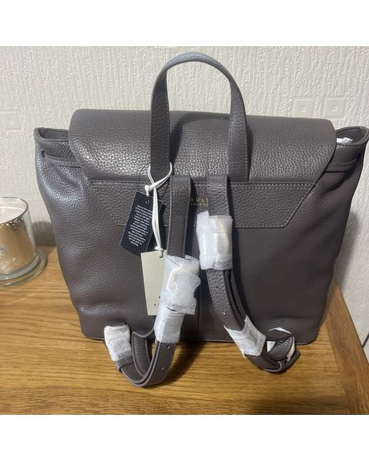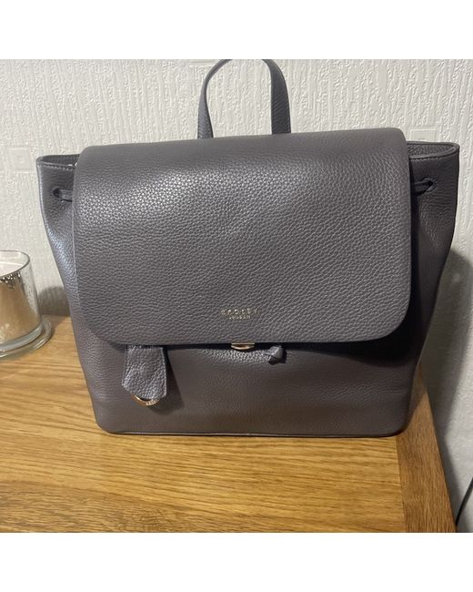 Grove Lane is a backpack you can rely on for a lifetime. Its flapover shape is timeless and it's grained leather only gets better with age. And Radley have made sure it's super secure too, with push-lock hardware and a drawstring fastening keeping your items safe on every journey Inside of flap is made of a black suede Plenty of room inside Adjustable back straps and a single carry handle Colour is called thunder grey which is between grey and a mocha brown colour Dimensions W36cm H26cm D 13cm Any questions feel free to ask Thanks for looking Brand new with tags Has a bag charm too Dust bag