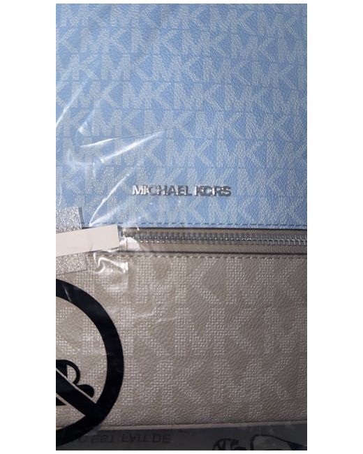 The Michael Kors Light Blue and Vanilla Medium Backpack is a stylish and practical choice for women on the go. Made from leather with a zip closure, this casual backpack features a medium size perfect for everyday use. The light blue exterior and blue leather handle/strap add a touch of sophistication, while the hot stamped initials add a personalized touch. With the iconic Michael Kors branding and high-quality craftsmanship, this backpack is a must-have accessory for any fashion-forward woman.