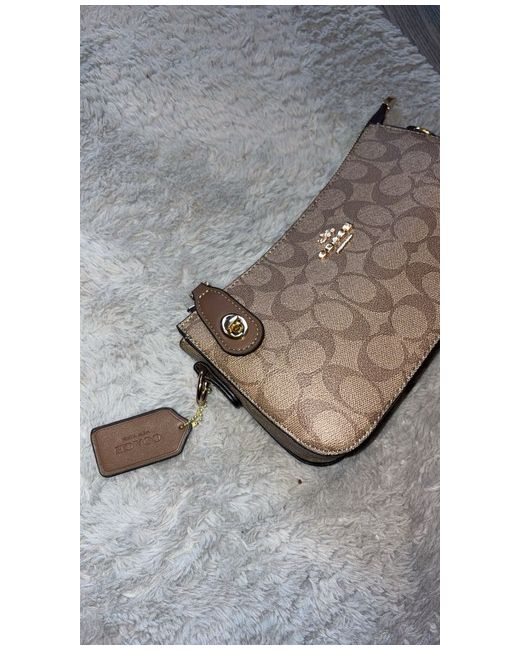 Cary Tan Rust Coated Canvas Signature Shoulder Bag