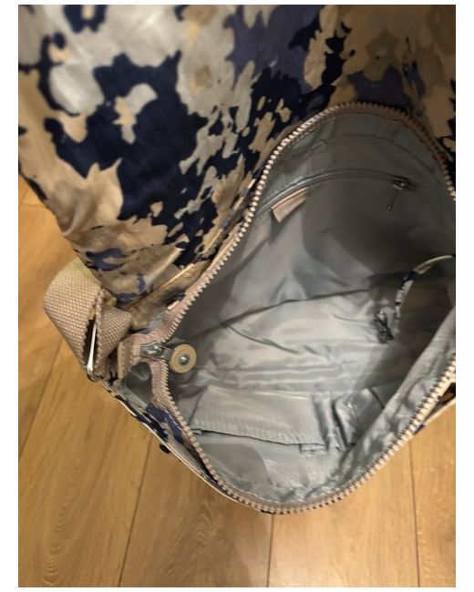 The nylon exterior in a blue and beige mix colour adds a pop of colour to any outfit, while the detachable strap allows for multiple styling options. Perfect for adding a chic touch to any wardrobe, this handbag is sure to turn heads.