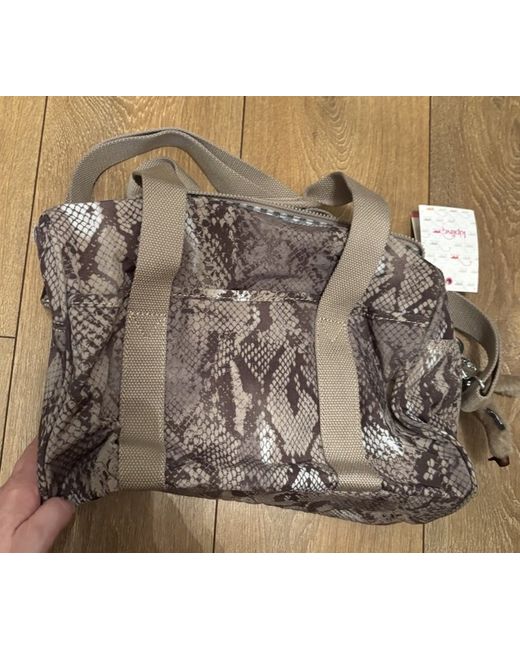 The KIPLING Practi Cool Beige Snake Print Shoulder/Cross Body Bag medium in size has lots of room , it is a stylish and versatile accessory for women. Made from durable polyester, this medium-sized bag features a trendy snake print exterior in beige. The beige polyester lining and handle/strap add a touch of sophistication to the design. Perfect for everyday use, this shoulder bag can also be worn as a crossbody for added convenience and ease of carrying. With the trusted Kipling brand and new tags, this bag is a must-have for any fashion-forward woman looking for a chic yet practical accessory. Height 11” width 13” depth 5”