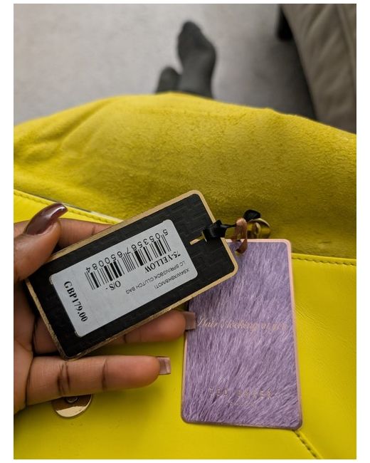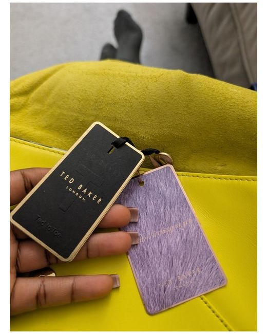 The Ted Baker Bag is a stylish shoulder bag designed for women, featuring a rectangular shape with a zip closure for easy access. Made from luxurious leather in a vibrant acid yellow colour, this bag is perfect for casual occasions and adds a touch of designer flair to any outfit. The bag includes inner pockets and a detachable strap, making it practical and versatile for everyday use. With gold hardware accents and a patent finish, this Ted Baker bag is a fashionable choice for any woman looking to elevate her accessory game.