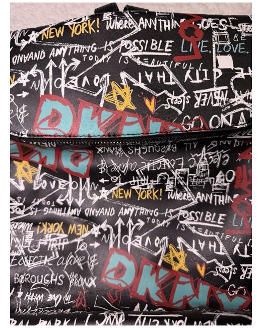 Stand out with this bold DKNY New York graffiti-print backpack, featuring an all-over NYC street-art design. This medium-size backpack is lightweight yet roomy, perfect for everyday use, travel, or city wear. Finished with adjustable shoulder straps, zip compartments, and DKNY branding throughout. Eye-catching, practical, and stylish — a great statement piece for any DKNY fan.