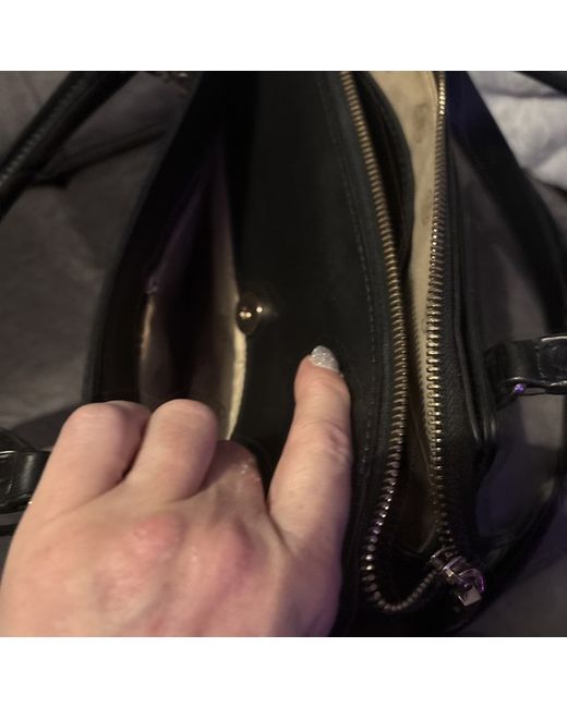zip pocket on the back protective metal feet closes with magnetic clasp two handles (handle drop 9 cm) removable and adjustable shoulder strap (Length ca. 100-120 cm) polished gold-coloured metal fittings detachable pendant Inside logo Lining polyester two main compartment. A WRONG GIFT