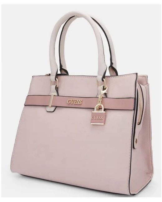 Elegance and functionality come together in this chic Guess satchel handbag, presented in a delightful blush pink hue. Crafted from durable polyurethane, this accessory is designed to complement the modern woman's wardrobe, offering a stylish top handle design that's both versatile and trendy. Ideal for everyday use or special occasions, the bag features a spacious interior to accommodate your essentials. With its classic yet contemporary style, this Guess satchel is a perfect blend of fashion and practicality, making it a must-have for those who appreciate sophistication in their accessories.