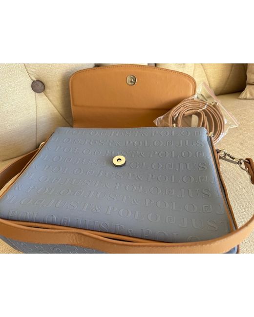 The Polo Ralph Lauren women's handbag is a stylish medium-sized shoulder bag in a light denim blue exterior with a matte finish. The bag features a faux leather and nylon handle/strap in brown, perfect for adding a touch of sophistication to any outfit. The interior is lined with pale blue fabric, making it a versatile accessory for various occasions. Made from durable nylon, this handbag is practical yet fashionable, making it a must-have for any woman's wardrobe. Would look great with jeans.
