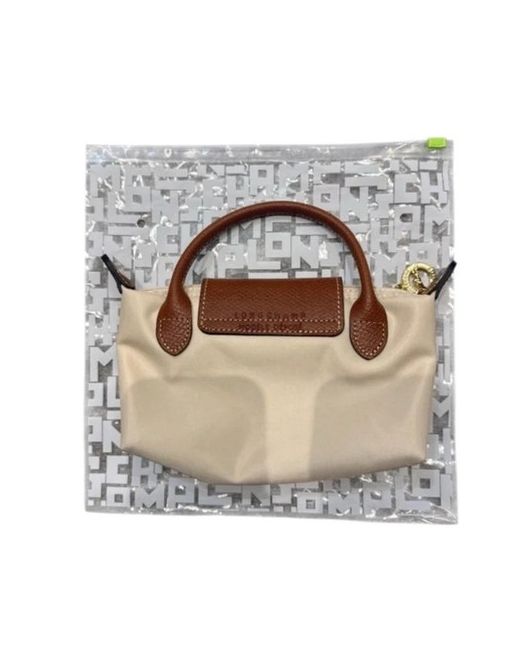 The LONGCHAMP Le Pliage Mini Pouch is a stylish and practical accessory perfect for a casual occasion. Made of durable polyamide material in a solid beige colour, this mini tote bag features a top handle and an adjustable strap for added convenience. With the iconic Longchamp branding and French craftsmanship, this pouch from the Longchamp Le Pliage collection combines fashion and functionality for a timeless and versatile accessory.