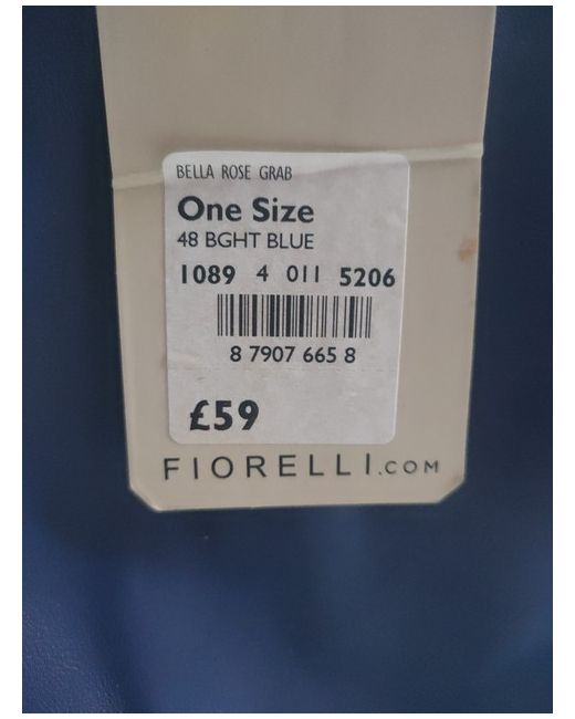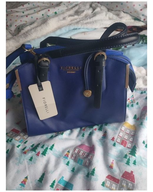 The Fiorelli Handbag is a stylish rectangle-shaped shoulder bag made from bright blue faux leather with a pebbled finish. It features a zip closure and silver hardware accents. Perfect for casual occasions, this designer handbag includes a detachable strap and bag charm, making it a versatile accessory for any outfit. Ideal for women looking for a chic and practical addition to their wardrobe.
