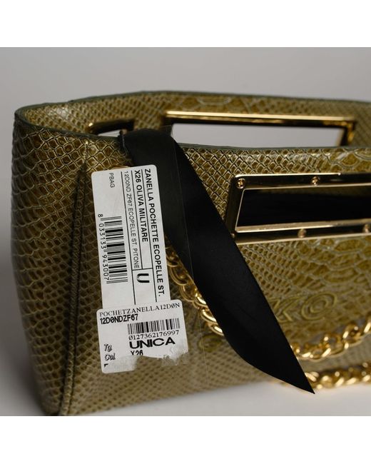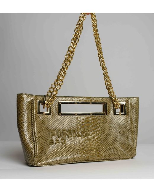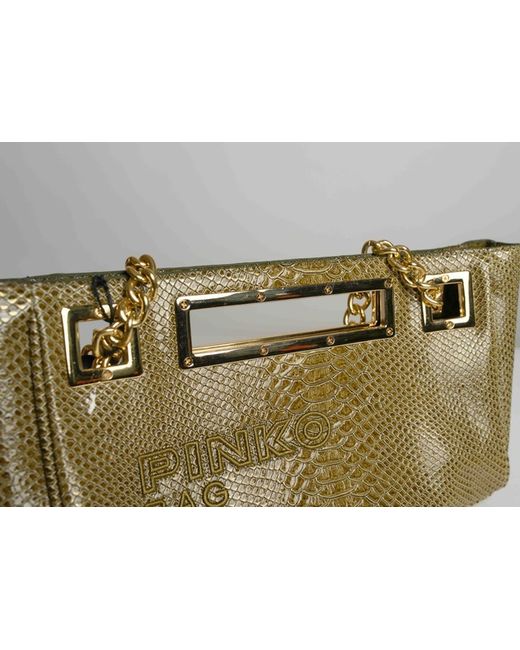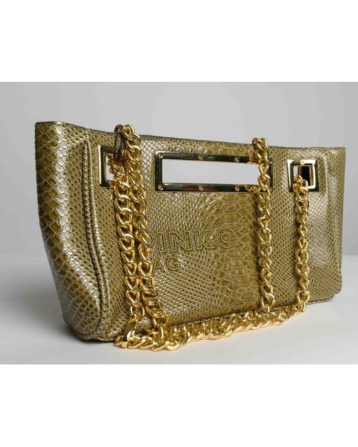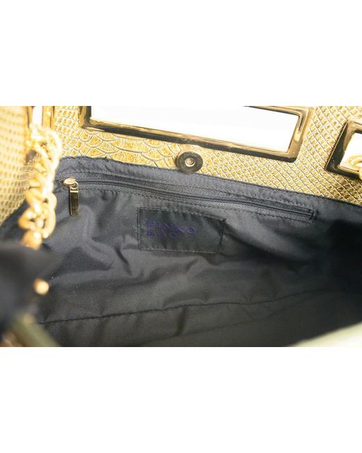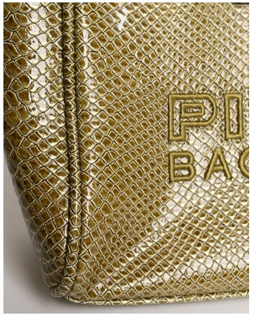Made from faux leather with a green exterior and a black cotton lining, this bag features a gold tone handle/strap. Perfect for carrying essentials in a fashionable way, this bag from PINKO is a must-have for any fashion-forward woman.