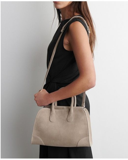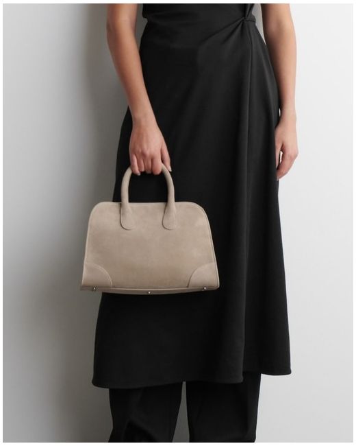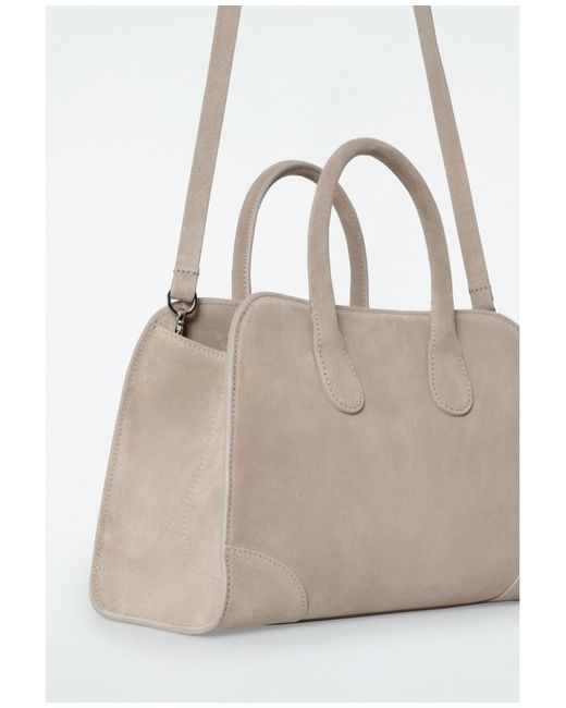 COS Mini Studio Bowling Bag in premium suede. Sold-out viral bag.Classic sand colour. Clip closure.Shell: 100% Suede.Excluding trims Height: 23cm, Width: 32cm, Depth: 14.5cmShell:Suede 100%Lining:Cotton 100%.