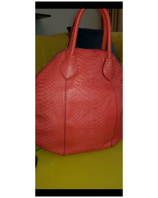 A RARE FIND! GOA big python satchel is crafted in an exotic and unique Coral colour. Featuring a detachable wide shoulder strap, rolled double handle, top zip closure, signature leather plaque with crocodile embellishments, gold tone hardware and details, internal zip pocket, signature dust bag included. PLEASE NOTE: SMALL PEN MARKS AS SHOWN IN THE PICTURE!