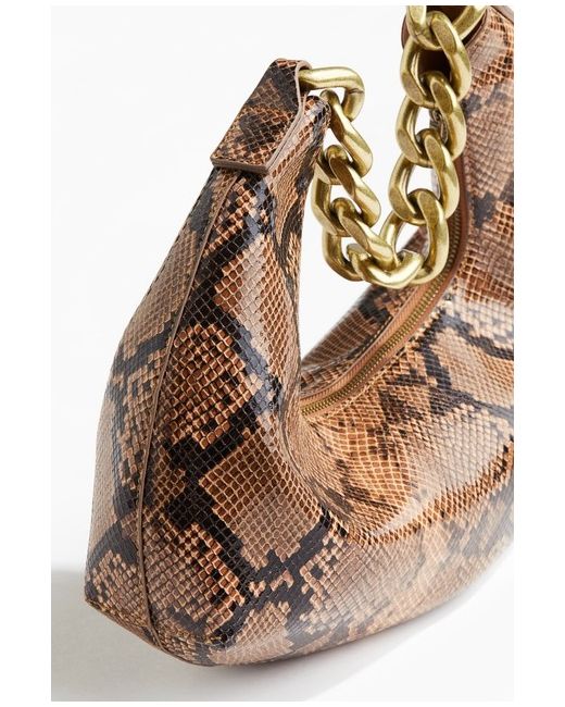 Taffeta lining. Shoulder bag. Brown/Dark brown, Snakeskin-patterned.