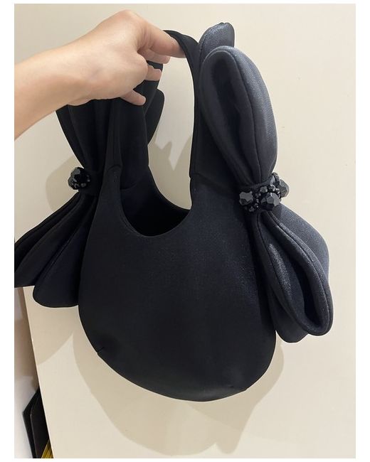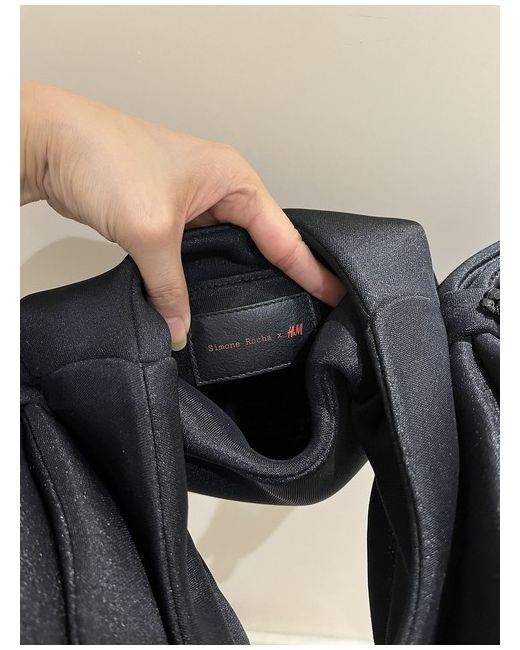 Simone Rocha x H&M black bag New without tags as was used for photoshoot Simone Rocha x H&M. Handbag in sturdy, double-layered scuba mesh with overdimensioned bows at the sides decorated with plastic stones, sewn on by hand. Handle at the top and one inner compartment. No fasteners. Height approx. 23 cm. Width approx. 27 cm. Length and width of bows approx. 31x14 cm. Shell: Polyester 100% Beautiful and unique little bag that is great for weddings and other events.