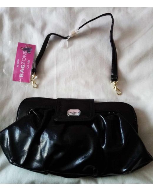 Bagzone Small Black Handbag With Removable Handle. Bag width approx. 23-27cm, (bag is wider at the bottom than the top. Black pleat look bag with flap over with magnetic fastening. Bag height approx. ).