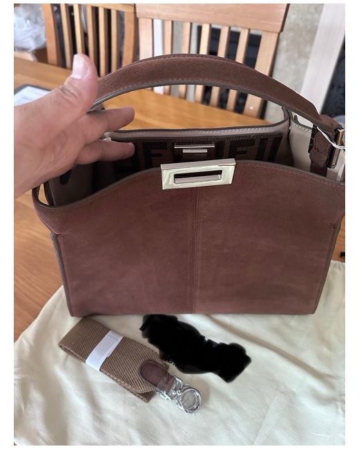 Genuine Suede Material handbag. Brown coloured soft suede material with silver hardware. Brand new never used. Comes with detachable crossbody strap and a dust bag. Excellent quality and perfect for autumn/winter weather.