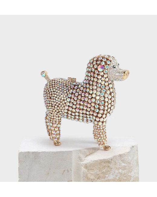 Our sparkling rhinestone poodle bags are the perfect accessory for a poodle owner or dog lover. The clutch is attached to a 120cm chain so can be used as a cross body or shoulder bag. They are lined with a luxurious satin interior.