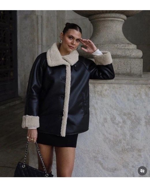 The ZARA ZW Collection Double-Faced Jacket in black is a stylish and versatile mid-length coat designed for women. Made with faux fur outer shell material and lined with polyester, this jacket is perfect for autumn and winter seasons. The button closure and collared design add a touch of sophistication to the overall look, making it a must-have piece for your wardrobe.