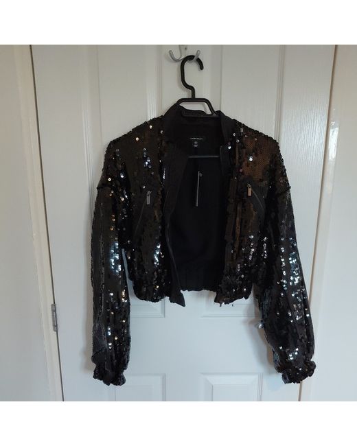 Brand new Black Sequin Karen Millen Sequin Bomber Jacket. Size 8 Perfect for the party season. Jacket is cropped with long sleeves and 2 zips on the front.
