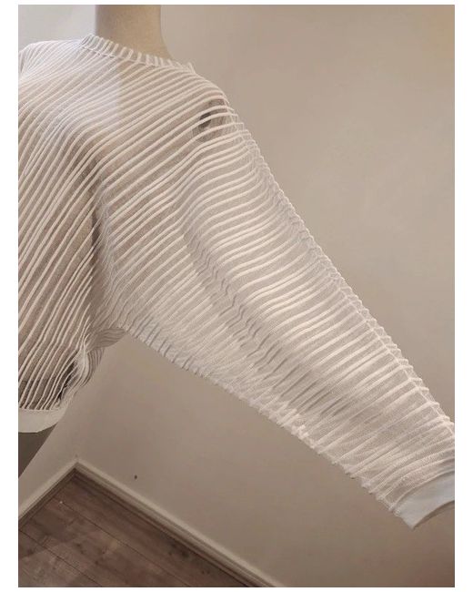 Women's White RRP 110 Sheer Striped Engineered Knit Designer Luxury Top M