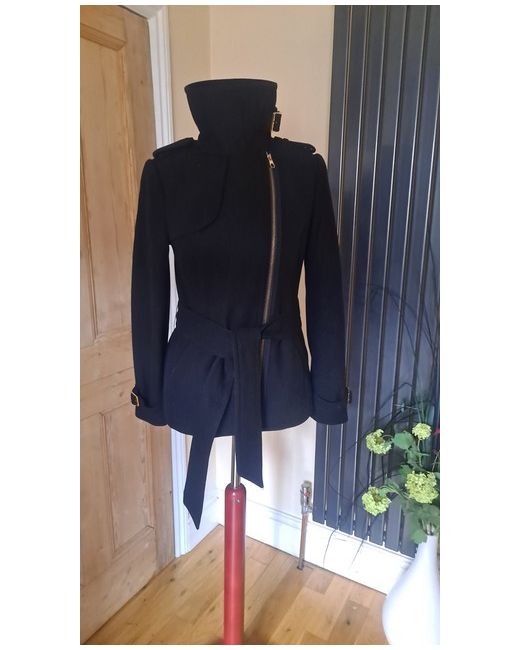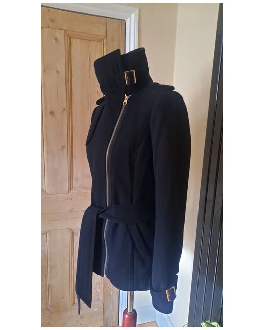 The Ted Baker Funnel Neck Wool Blend Coat Jacket is a versatile and stylish outerwear garment designed for women in size UK 8 (Size 1). Never worn. Asymmetrical zip. Gold detailing on neck and cuffs. Belted. 80% Wool outer shell and lining, this short-length coat is perfect for casual occasions during the winter season. The black colour, regular fit, and overcoat style make it a classic and timeless addition to any wardrobe. With the renowned Ted Baker brand, this coat combines quality craftsmanship with a flattering silhouette.