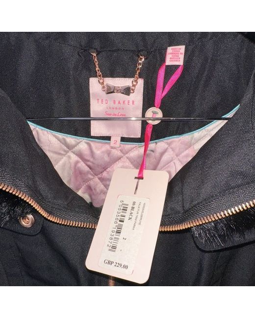 This Ted Baker Ladies Coat in size 10 is a stylish and practical choice for the winter season. Made from polyester with wool insulation, it provides warmth and comfort. The mid-length overcoat in black is perfect for casual occasions, with a regular fit for a flattering silhouette. Dry clean only to maintain its quality, this coat is a versatile addition to any woman's wardrobe, combining fashion and functionality from a trusted brand like Ted Baker. Length 32inches