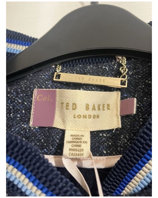 The Ted Baker Navy Bomber Jacket is a stylish and versatile garment for women, perfect for casual occasions in the spring season. Made from polyester with a polyester lining, this regular fit jacket in a classic blue colour is both fashionable and practical. Designed by the renowned brand Ted Baker, this bomber jacket features a UK size 12 (Size 3) and is recommended to be dry cleaned only. With its timeless style and high-quality construction, this jacket is a must-have addition to any woman's wardrobe.