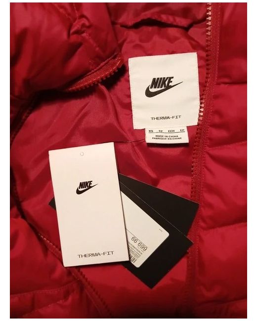 Rand new Nike insulated jacket in a deep red colour. Warm, lightweight and great quality – classic Therma-Fit Repel style with down fill (75% minimum grey duck down). The front Nike logo has a very slight adhesive halo visible under strong light.
