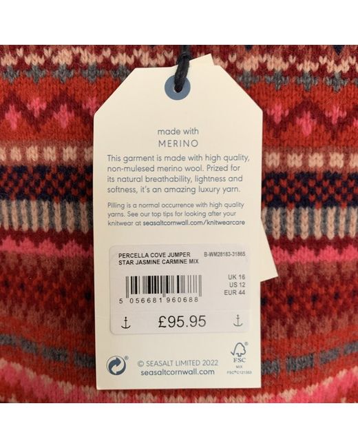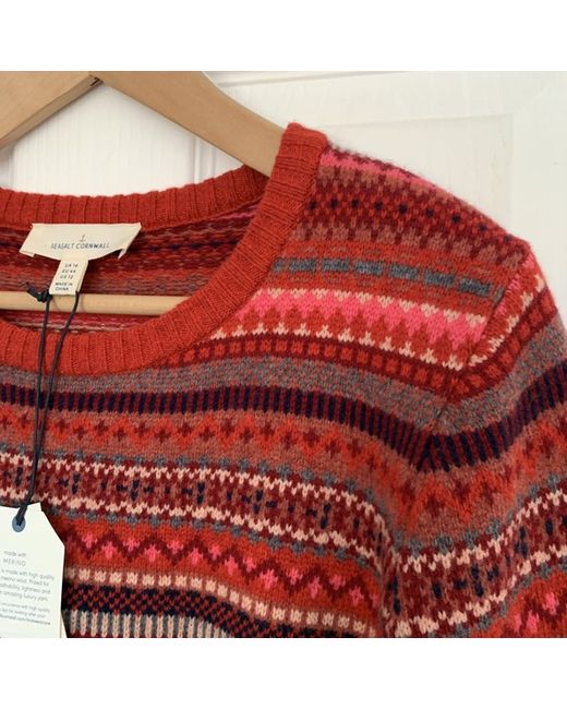 Brand new ~ beautiful soft feel merino wool fair isle percella cove jumper. Loose fit. Star jasmine carmine mix. Pit to pit ~ 22.5 inches. Length ~ 25 inches. Size 16. New with tags £95.95. Selling for £49.00 absolute bargain price.