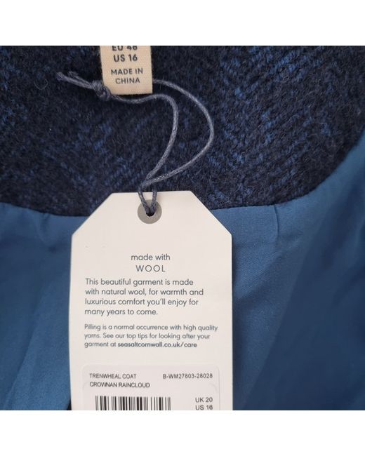A beautifully madeSeasalt Cornwall wool blend coat in a classicblue herringbone design. Featuring a softbouclé-style texture, this coat is both warm and stylish – perfect forautumn and winter wear.