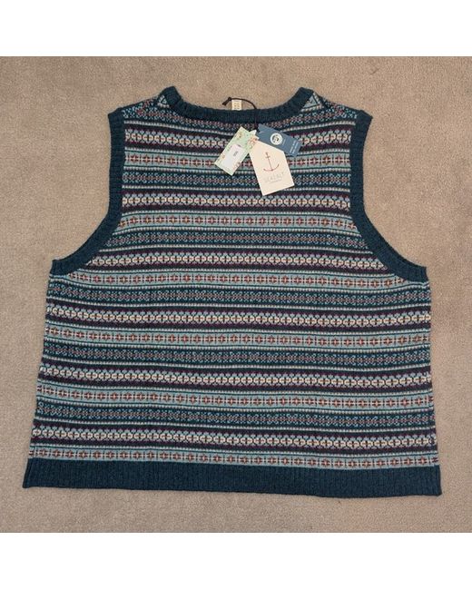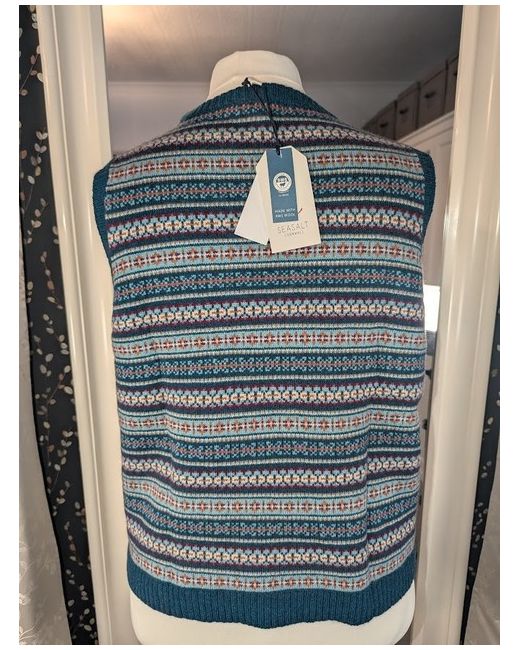 Seasalt Cornwall ‘Percella Cove’ Fair Isle Knitted Vest Colourway: Wheal Towan Seashore (teal multi)UK Size 20vintage-inspired sweater vest, Knitted from a blend of soft merino and recycled fibres for durability. Beautiful geometric pattern It's the perfect piece to add a pop of pattern and colour to your autumn and winter wardrobe. 80% Merino wool 20% Recycled Nylon I have lots of lovely dresses, cosy knits, tops, pyjamas, shoes and coats. Seasalt, Joules, White Stuff, Chelsea Peers, Orla Kiely, Boden and Fat Face in stock and more on the way. Please message me if you have any questions or would like to talk about bundles and I will see what I can do.