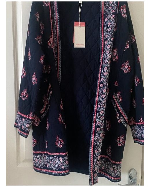 This Monsoon navy blue floral coat is a stylish addition to any woman's wardrobe, with its small/medium size making it perfect for a variety of body types. The coat features a classic jacket style with pockets, providing both functionality and fashion. The delicate floral pattern adds a touch of femininity to this versatile piece, making it suitable for both casual and more formal occasions. The coat is designed for regular fit, ensuring comfort and a flattering silhouette for the wearer. It was bought at £100