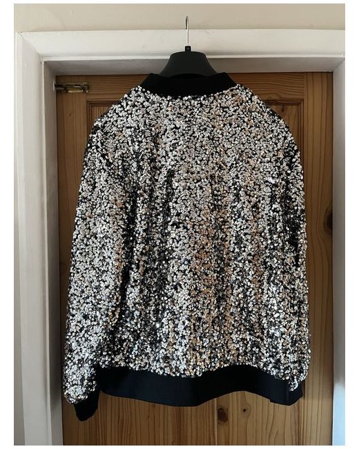 The M&S Sequined Bomber Jacket in size 16 is a stylish and glamorous addition to any woman's wardrobe. Made from 96% polyester / 4% elastane with a 100% polyester lining, this bomber jacket features silver sequin accents that add a touch of sparkle to the casual style. Machine washable for easy care, this regular fit bomber jacket from Marks & Spencer is perfect for adding a bit of sparkle to any outfit.