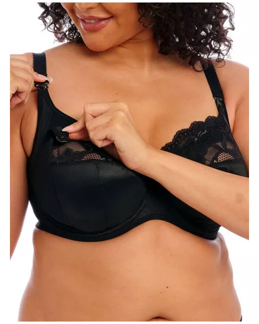 Item model number EL4542. Elomi's newest addition to the Nursing collection, Molly, is a stretch lace underwire Nursing bra available up to a KK cup. Manufacturer Elomi. Colour Black. Ask us anyhting.