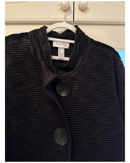 The Joseph Ribkoff Size 22 Black Textured Swing Jacket is a stylish and versatile piece for women. Made from polyester, this mid-length jacket features a kimono style design, making it perfect for casual occasions. The black colour and textured finish add a touch of sophistication to the outfit. With its high-quality construction and flattering fit, this jacket is a must-have for any fashion-forward individual looking to elevate their wardrobe. Weight loss only reason for sale Very glamorous, jet black jacket suitable for evening too as has a sheen . Swing style is very flattering . Smoke free home . Immaculate