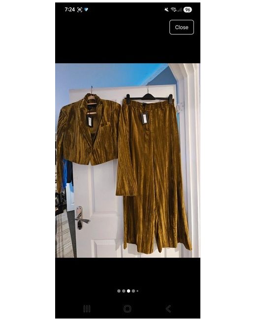 brand new riverisland suit the material is stretchy and very comfy. its just to big for me. trousers high waisted the colour is so different and amazing. its such a classy outfit.