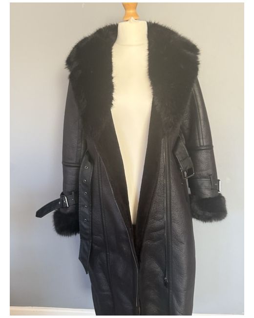 Faux Leather Shearling Lined Belted Trench Coat Uk 14 NEW