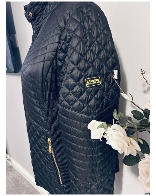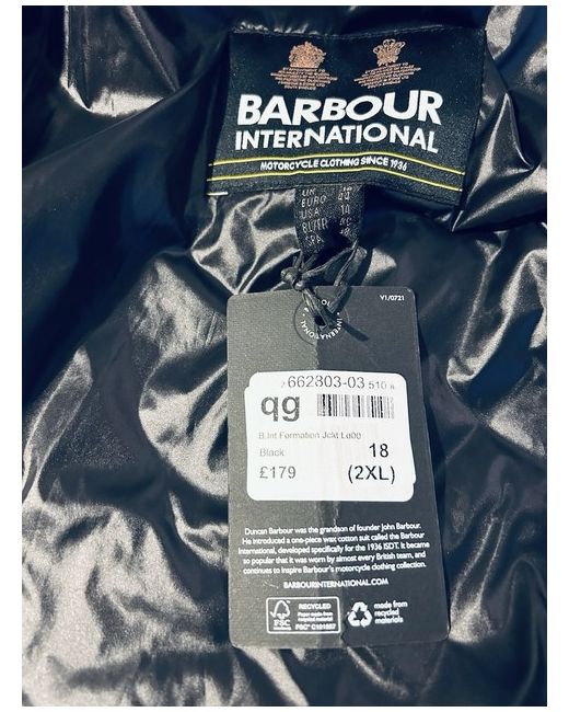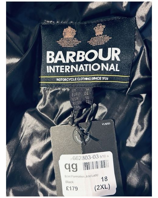 This jacket is brand new with tags still on I purchased this at the beginning of the year from Frazers at £179 This is the classic barbour International formation black biker jacket It has the two side stretch panels for That added extra comfort fit 2 zip pockets And a hidden zip pocket inside Zips up with Press stud fastener at the collar This would make a fabulous present 🎁 As it is brand-new & still has the original tags on this? reason for sale due to weight loss I am searching a smaller size as I absolutely love this coat😍 Size on the Tag is an 18 but will also fit a size 10