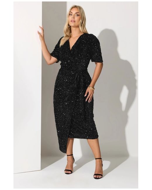 Fit & Fashion Notes: Invest in elegant evening wear with this wrap dress from Yours London. Made from a soft velvet fabric, it features sequin embellishment with short puff sleeves and a belted tie waist fastening. Team with heels and a clutch bag for a look that is perfect for party season. Why We Love It: Sequins or velvet. Why choose when you can have both.
